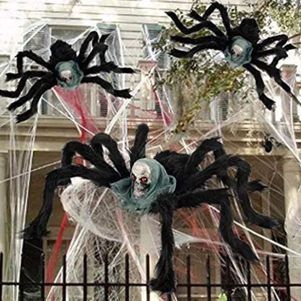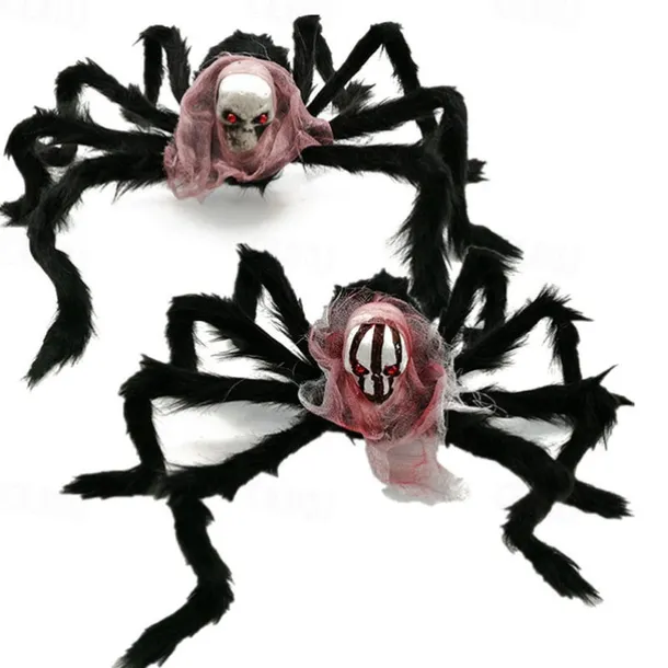 Halloween Large Spider Decoration Realistic Hairy Spider Horror Skeleton Spider Prank Prop Skull Spider Plush Toy Halloween Party Scary Decoration
