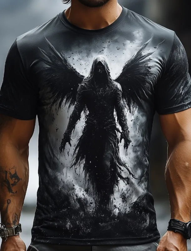 Halloween Men’s Angel & Devil T Shirt Short Sleeve T shirt 3D Print Crew Neck Shirt Fashion Exaggerated Designer Party Street Casual Black Red Blue Summer Spring All Seasons Clothing Apparel S M L XL