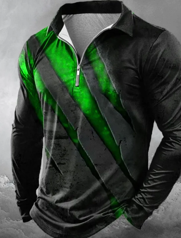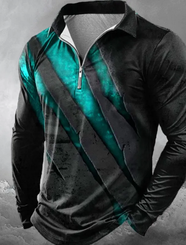Halloween Men’s Graphic Abstract Zip Polo Shirts Long Sleeve Polo Shirts Lapel Casual Horror Dark Outdoor Festival Outfit 3D Print Spring Fall Winter Lake blue Red Blue