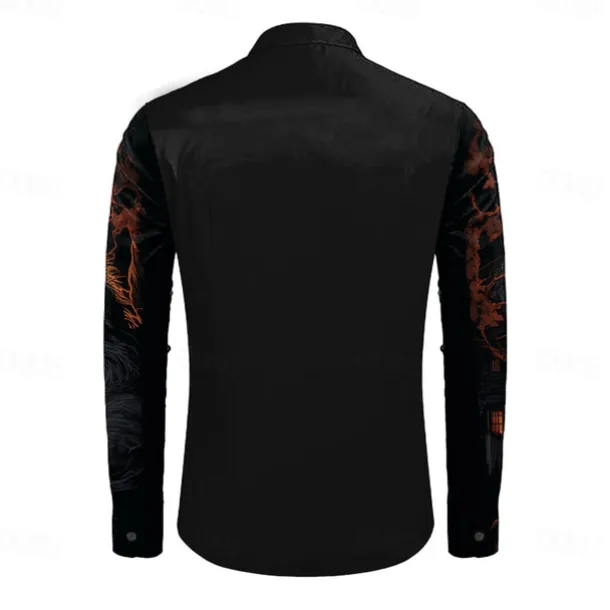 Halloween Men’s Halloween Costumes Button Up Shirt Long Sleeve Horror Party Evening Wear Fall Winter Spring & Summer Shirt Collar 3D Print Black
