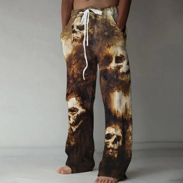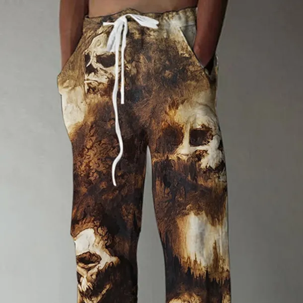 Halloween Men’s Halloween Costumes Skulls Trousers Baggy Pants Casual Pants Mid Waist Casual Outdoor Vacation Elastic Drawstring Waist Linen-Like Pants with Pockets Spring Fall 3D Print Black Brown
