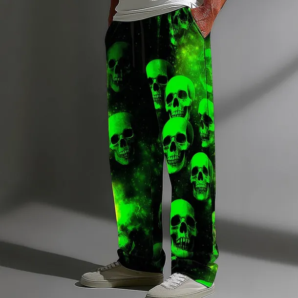 Halloween Men’s Halloween Costumes Skulls Trousers Baggy Pants Casual Pants Mid Waist Dark Gothic Style Holiday Elastic Drawstring Waist Linen-Like Pants with Pockets Spring Fall 3D Print Black Brown