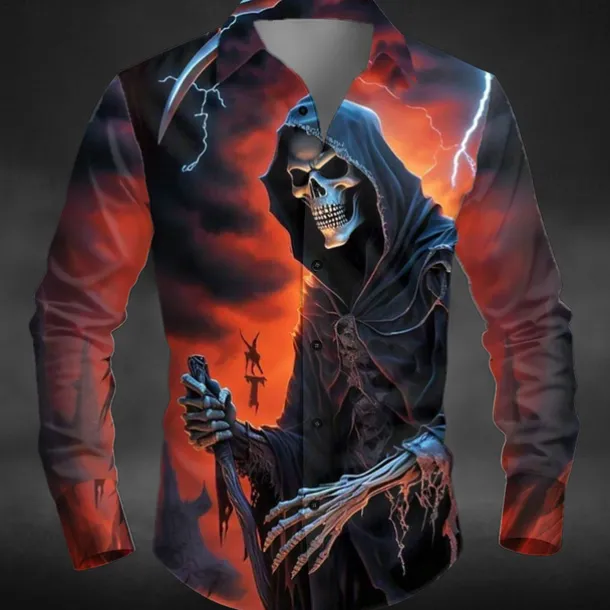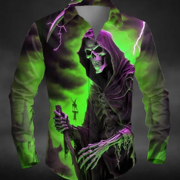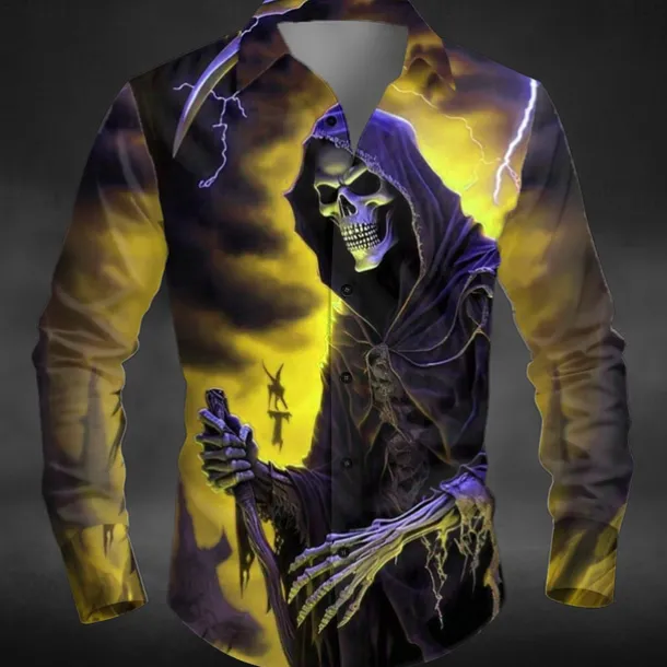 Halloween Men’s Lightening Death Halloween Costumes Shirt Button Up Shirt Long Sleeve Dark Punk Gothic Style Outdoor Holiday Summer Spring Turndown 3D Print Collared Shirts Yellow Orange Green