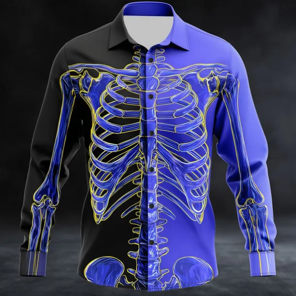 Halloween Men’s Optical Illusion Skeleton Shirt Button Up Shirt Long Sleeve Dark Punk Gothic Style Outdoor Holiday Summer Spring Turndown 3D Print Collared Shirts Purple Brown