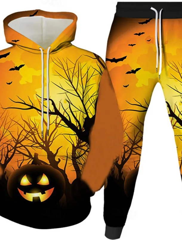 Halloween Men’s Owl Pumpkin 2pcs 3D Sweatshirt Sets Tracksuit Hoodie Sweatshirt Long Sleeve Long pants Hooded Casual Daily Athleisure Festival Outfit 3D Print Spring Fall Winter Yellow Orange