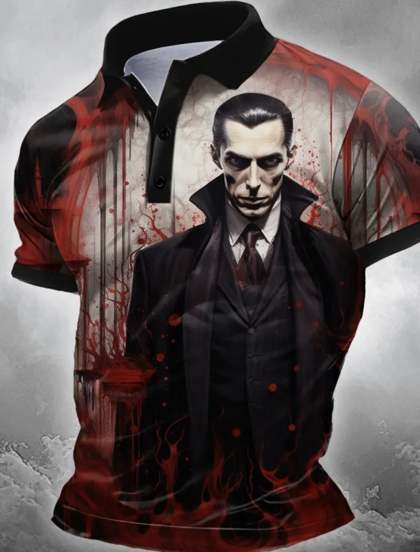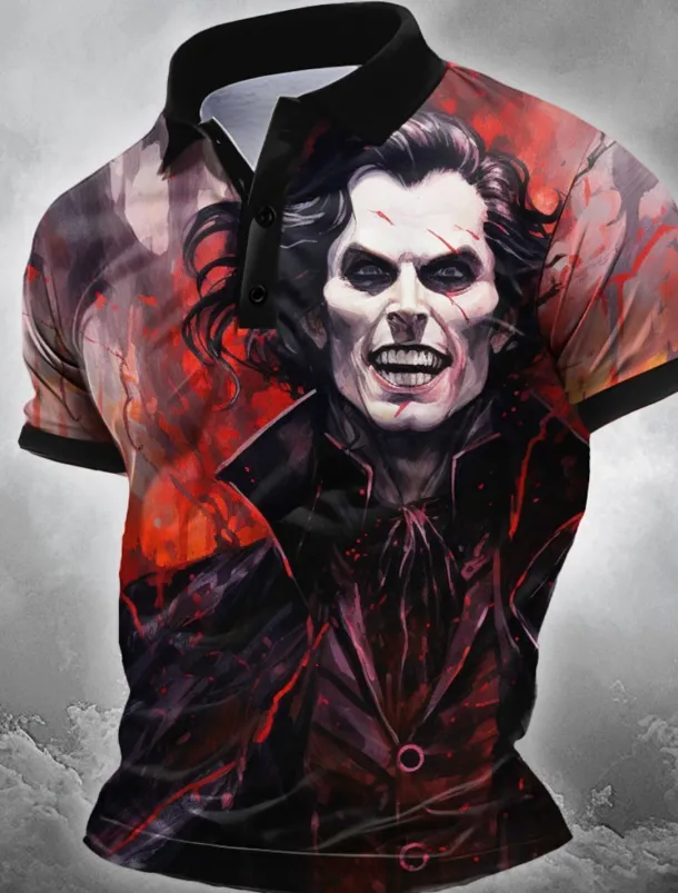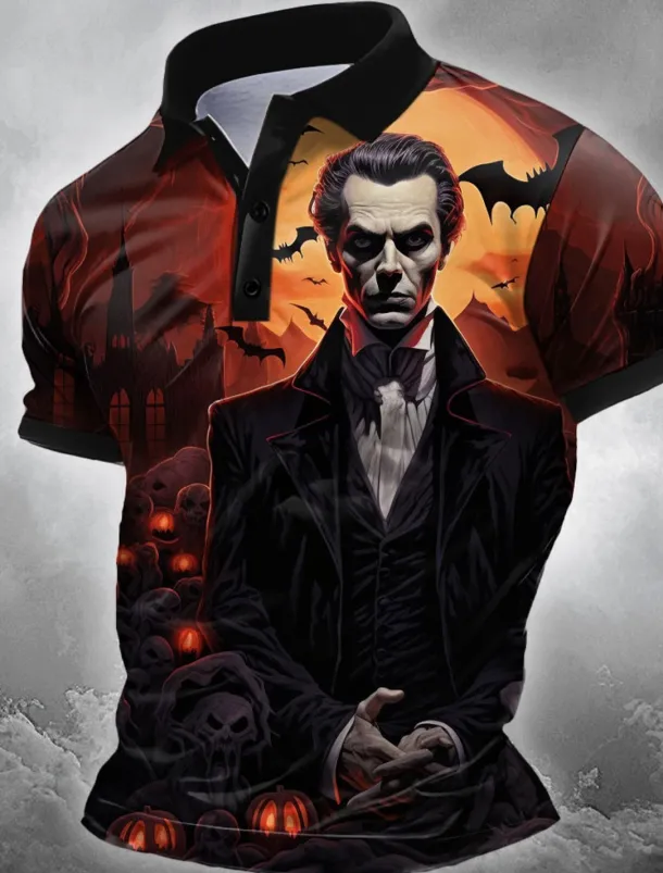Halloween Men’s People Polo Short Sleeve Polo Shirts Collared Shirts Casual Horror Dark Athleisure Streetwear Festival Outfit Buttons Summer Black Red Orange