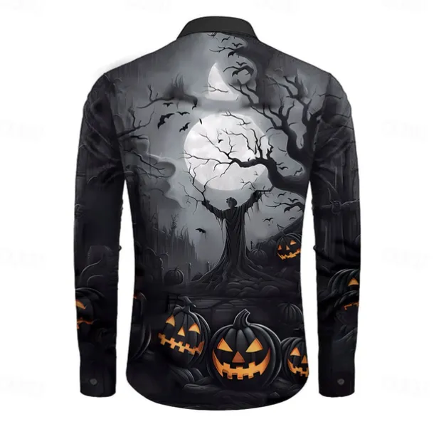 Halloween Men’s Pumpkin Halloween Costumes Button Up Shirt Long Sleeve Horror Party Evening Wear Fall Winter Spring & Summer Shirt Collar 3D Print Black