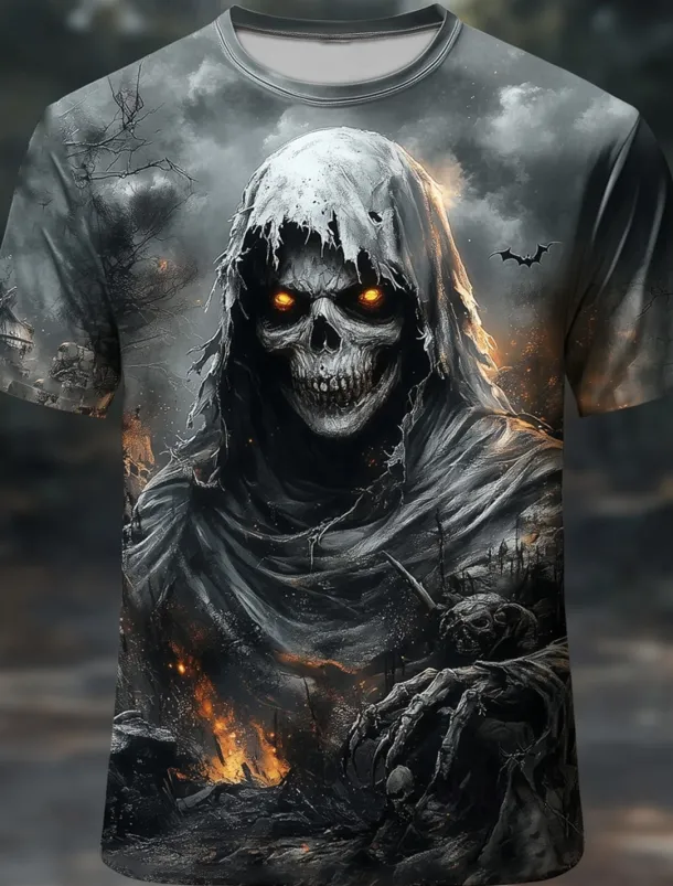 Halloween Men’s Skull 3D Reaper T Shirt Short Sleeve T shirt 3D Print Crew Neck Round Neck Shirt Exaggerated Designer Horror Party Street Casual Black 1 Black Red Summer Spring All Seasons Clothing