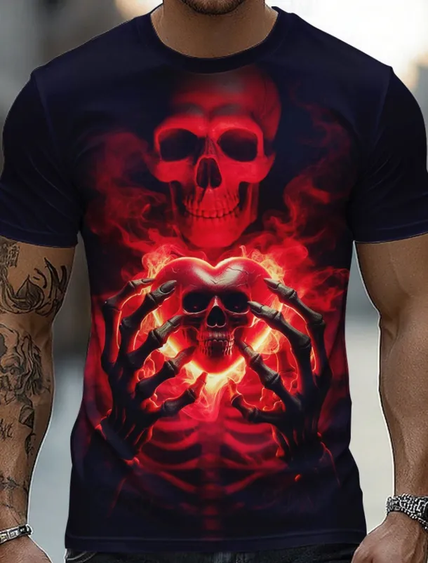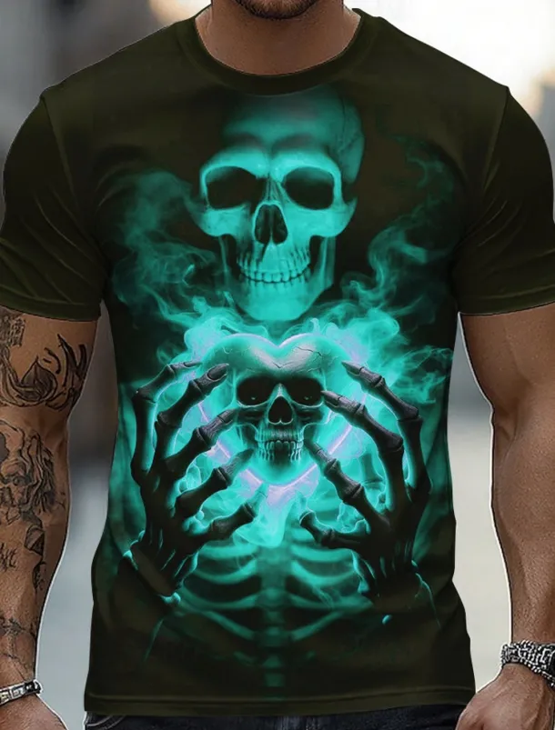 Halloween Men’s Skull 3D T Shirt Short Sleeve T shirt 3D Print Crew Neck Shirt Fashion Exaggerated Daily Party Street Casual Yellow Red Blue Summer Spring All Seasons Clothing Apparel S M L XL XXL