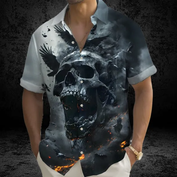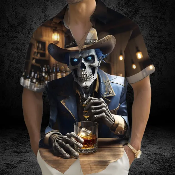 Halloween Men’s Skull Death Halloween Costumes Shirt Summer Shirt Button Up Shirt Short Sleeve Dark Gothic Style Holiday Summer Spring Turndown 3D Print Collared Shirts Front One Pocket Brown Dark