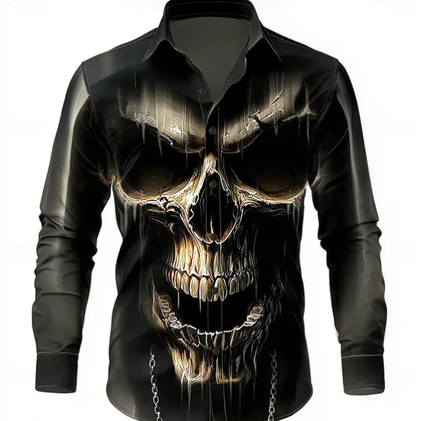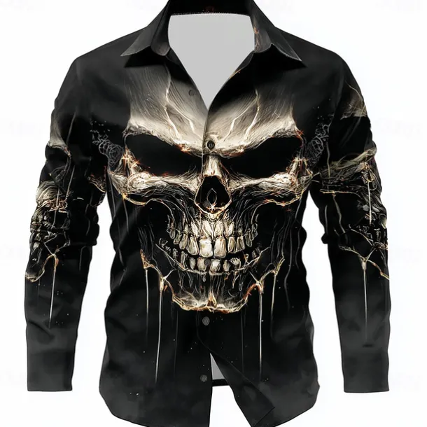 Halloween Men’s Skull Death Shirt Button Up Shirt Long Sleeve Dark Punk Gothic Style Outdoor Holiday Summer Spring Turndown 3D Print Collared Shirts Black 1 Black