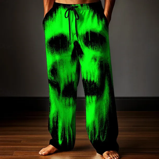 Halloween Men’s Skull Halloween Costumes Trousers Baggy Pants Casual Pants Mid Waist Dark Gothic Style Outdoor Holiday Elastic Drawstring Waist Linen-Like Pants with Pockets Summer Spring Fall 3D