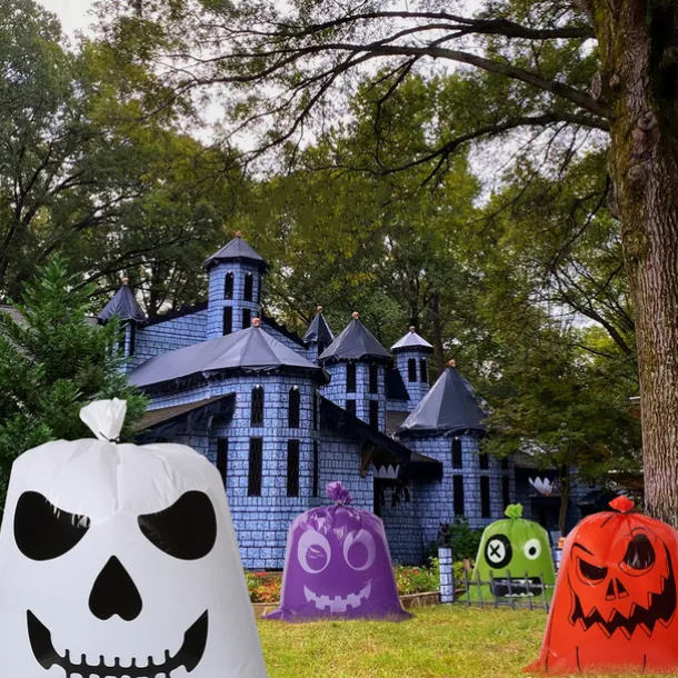 Halloween Pumpkin Leaf Bags – 2 Pack, Plastic, Funny Expressions, Lawn Decorations, Party Supplies