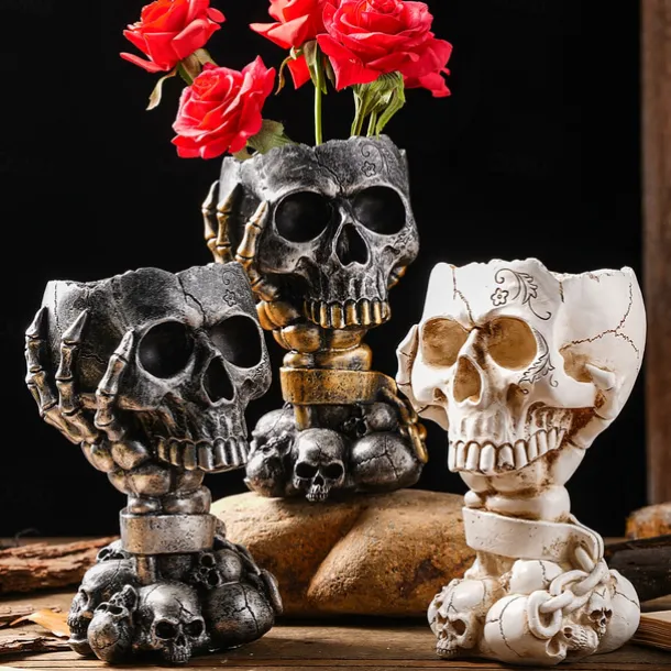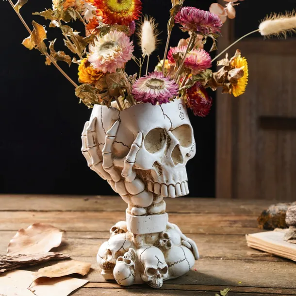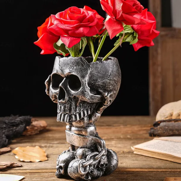 Halloween Skeleton Skull Head Flower Pot Nordic Modern Home Decoration Personalized Damaged Old Shackles Skull Head Resin Crafts Halloween Ghost Head Bone Gift Scene Decoration Photography Props 1PC