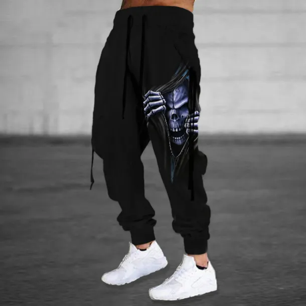 Halloween The Grim Reaper’S Hand Skull Mens Graphic Pants | Casual Sports Outdoor Black Cotton | Sweatpants Joggers Trousers Drawstring Side Pockets Elastic Waist Prints Comfort Breathable Daily Blend