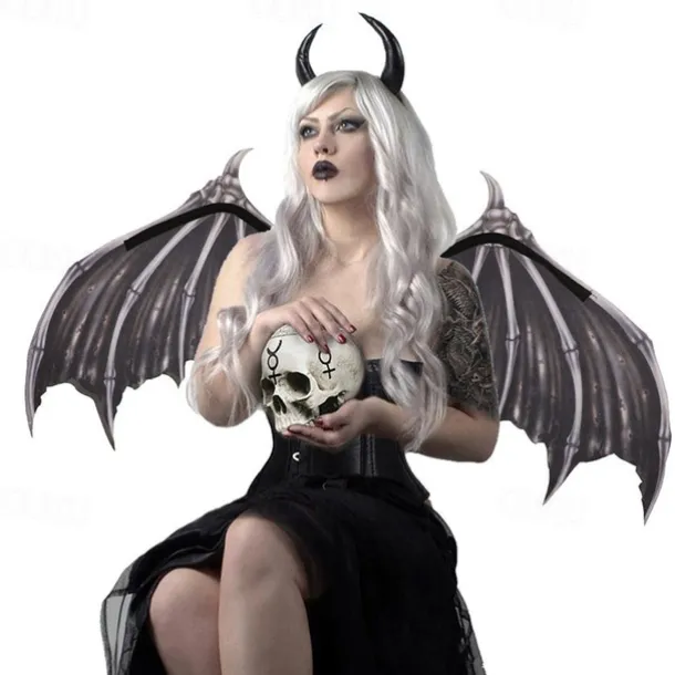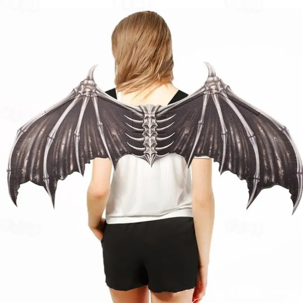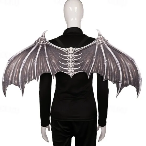 Halloween Wings Demon Bone Skeleton Folding Batpunk Fallen Angel Evil Festival Carnival Props Men and Women Halloween Carnival Ball Props Foldable Black and White Non woven Fabric Demon Bone Wings