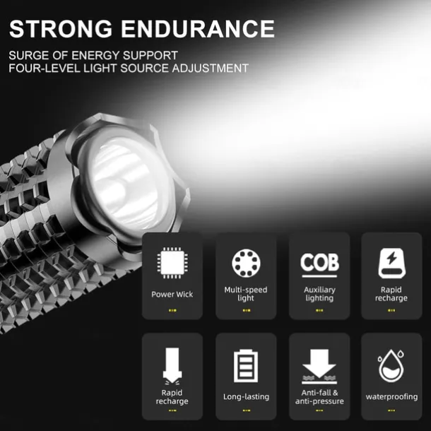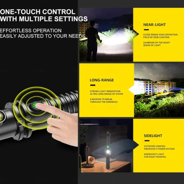 Handheld Flashlight Dual-Light Flashlight with COB Sidelight – USB Rechargeable, 6H Runtime, ABS Lightweight Body for Home, Camping & Emergencies