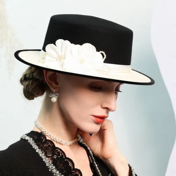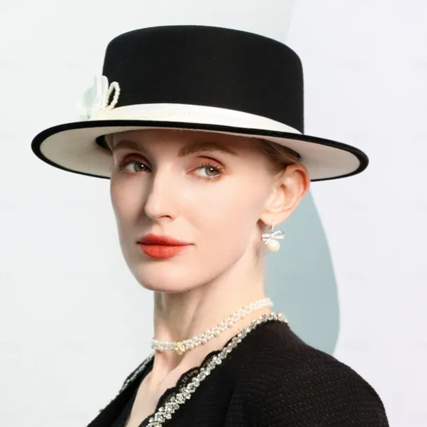 Hats 100% Wool Bowler / Cloche Hat Top Hat Wedding Tea Party Elegant Wedding With Feather Pearl Headpiece Headwear