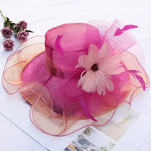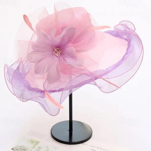 Hats Organza Sun Hat Casual Tea Party Cocktail Elegant Vintage With Feather Floral Headpiece Headwear