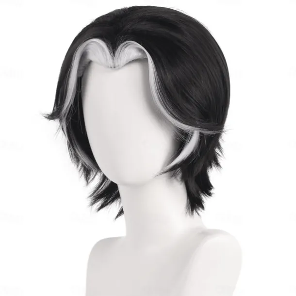 Hazbin Hotel Synthetic Wig Hesco Straight Micro Locs Asymmetrical Deep Parting Wig 14 inch A1 Synthetic Hair Women’s Cool Classic Comfortable Black
