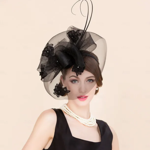 Headbands Fascinators Hats Tulle Sinamay Pillbox Hat Top Hat Veil Hat Wedding Tea Party Elegant Wedding With Rhinestone Bowknot Headpiece Headwear