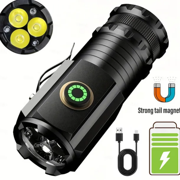 High Power Led Mini Flashlight, Strong Magnetic Tail LED Torch with 3 LED and Self-defense Lamp 5 Lighting Modes Bright Suitable for Outdoor Hiking Lights