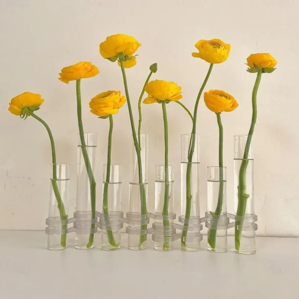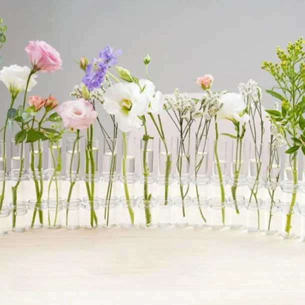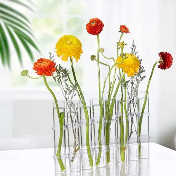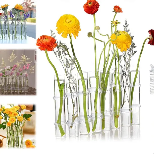 Hinged Flower Vase,Foldable Flower Vase Set, Foldable Flower Vase with Hinged Design, Shape Changeable DIY Crystal Glass Test Tube with 6/8 Test Tubes and S-Shaped Hooks