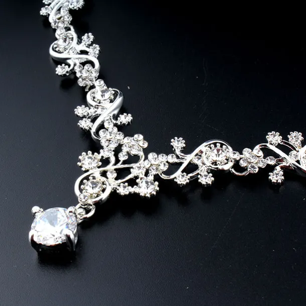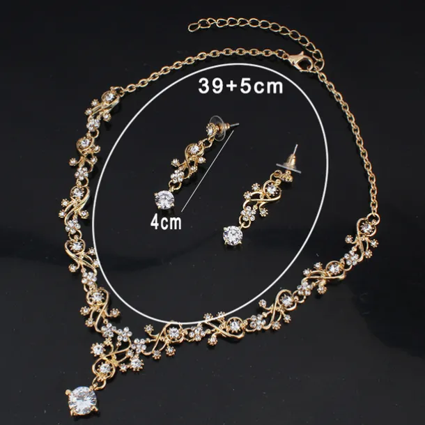 Hoop Earrings 1 set White Cubic Zirconia 18K Gold Plated Rhinestone 1 Necklace Earrings Women’s Elegant Basic Korean Classic Drop Feather Jewelry Set For Carnival Wedding Party