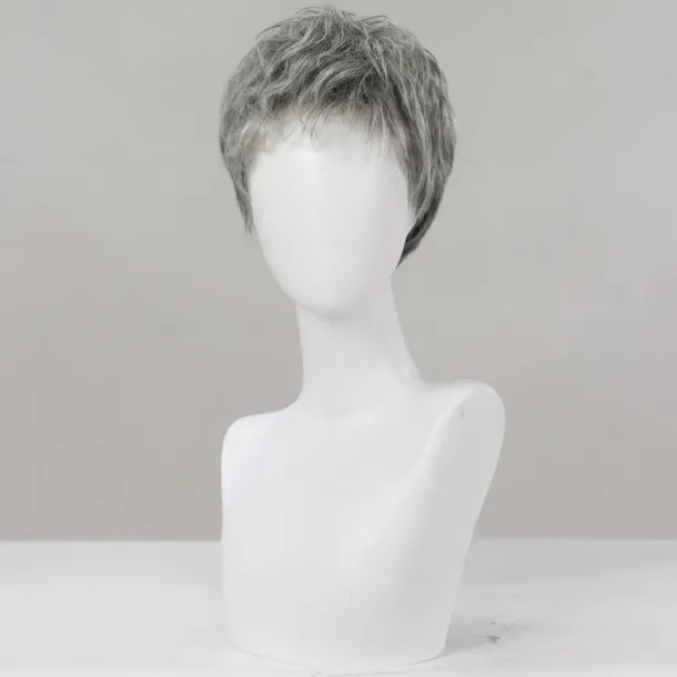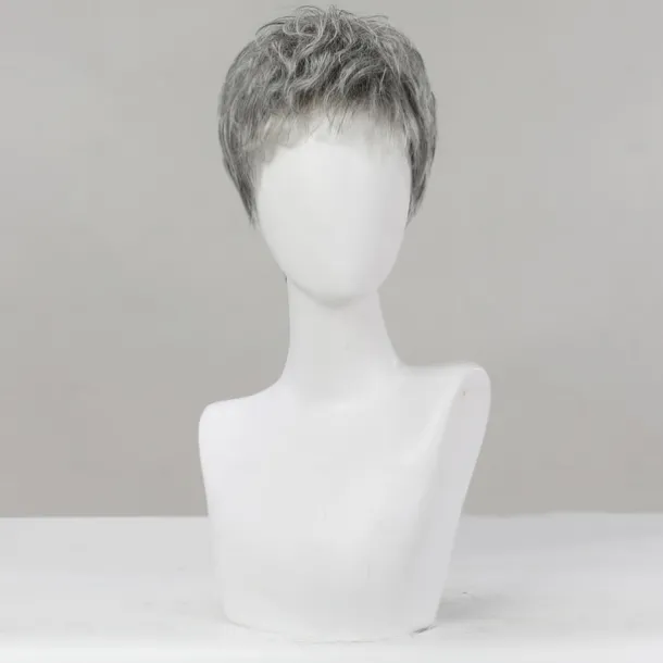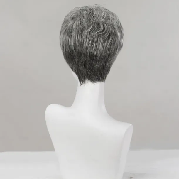 Human Hair Blend Wig Short Loose Curl Water Wave Pixie Cut Side Part Layered Haircut Asymmetrical Dark Gray Cosplay Curler & straightener Natural Hairline Capless Burmese Hair Chinese Hair Men’s All