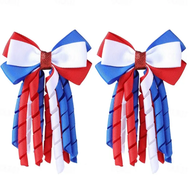 Independence Day Hair Bow Clips 3 Inch Red White Blue Curly Ribbon Hair Clips Handmade School Kids Girls Hair Accessories for 4th of July