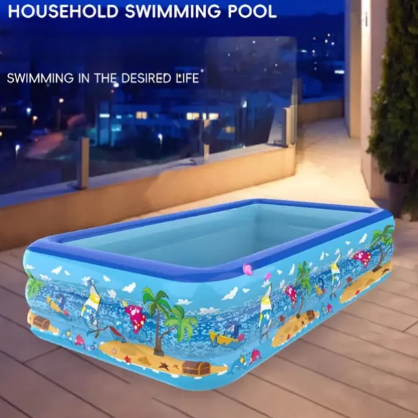Inflatable Top Ring Swimming Pool Family Size PVC Paddling Pool with Multiple Components – Electricity-Free Home Swim and Play Pool with Thickened Marine Ball Pit Design