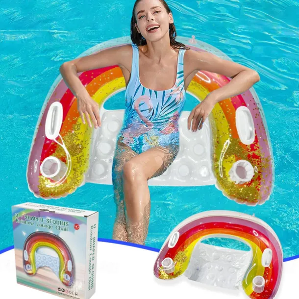 inflatable water sequin rainbow mount recliner with thickened U-shaped floating sofa hammock and swimming ring
