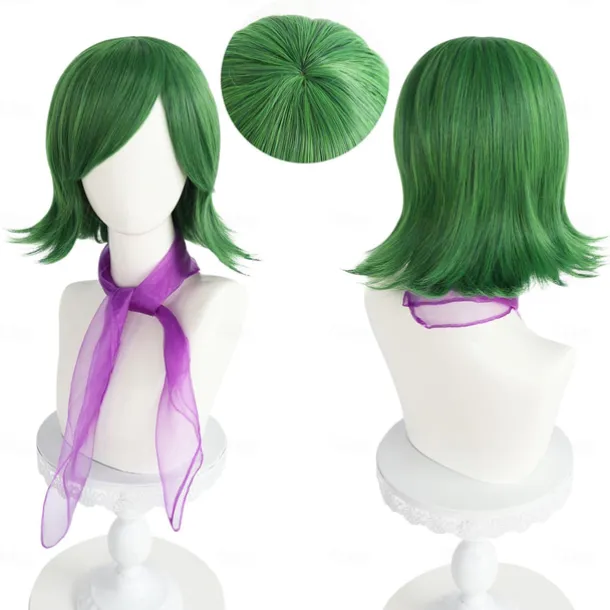 Inside Out 2 Disgust Wig Cosplay Short Green Wig for Women Anime Cosplay Green Bob Wig with Bangs Sythetic Hair Wig Anime Styled Wigs for Carnival Costume Party (Only Wigs) Halloween Wigs