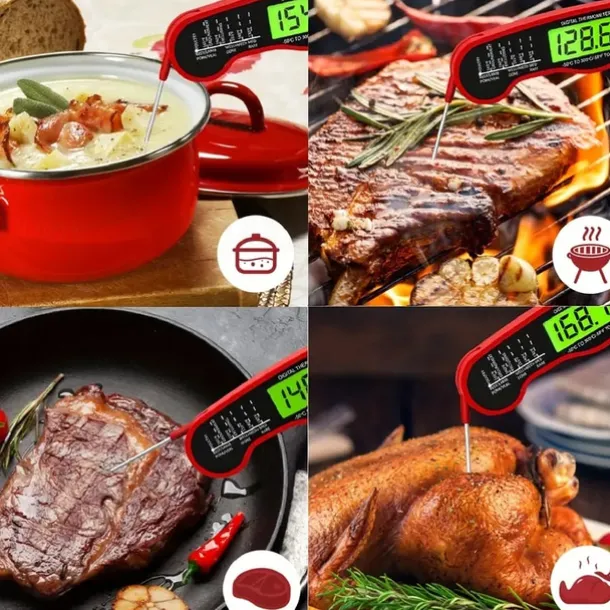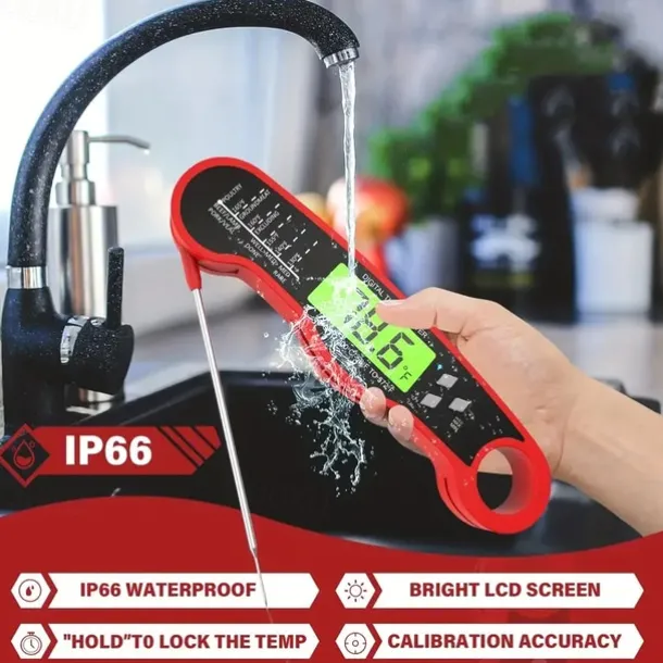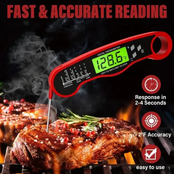 Instant Read Meat Thermometer, Waterproof Ultra-Fast Digital Food Probe with Backlight, Calibration for Grill, BBQ, and Cooking