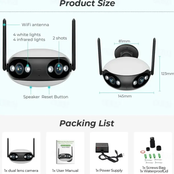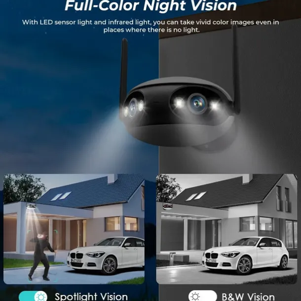 4. Multiple modes: Supports full-color mode, infrared mode, and double-light alert mode for various surveillance needs.