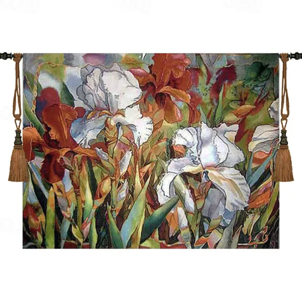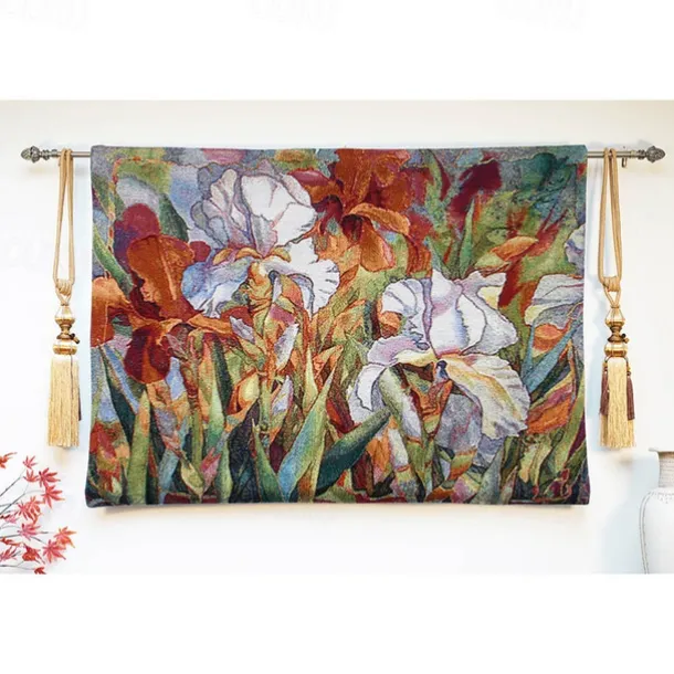 Jacquard Woven Tapestry Gobelin Aubusson Wall Art Hanging Aubusson Large Tapestry Reproduction Loom Cotton Weave Modern Poppies Belgian Tapestry (without tassels and rod)