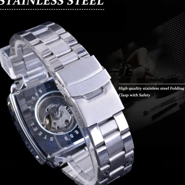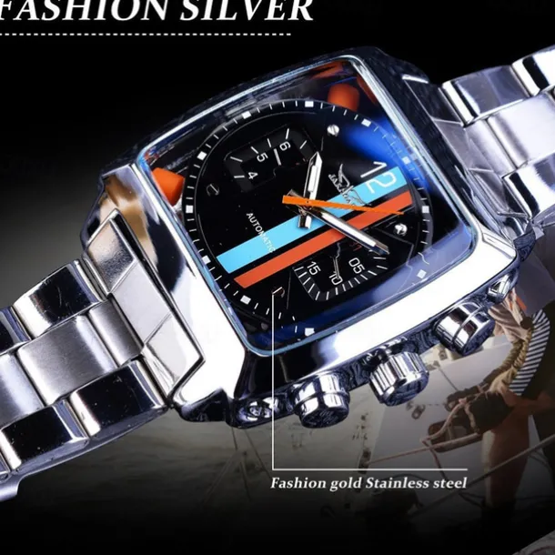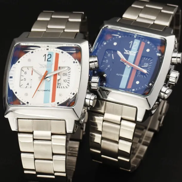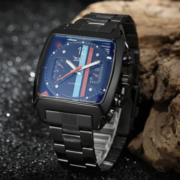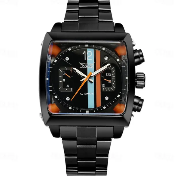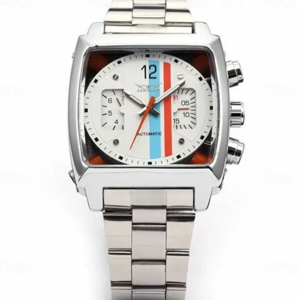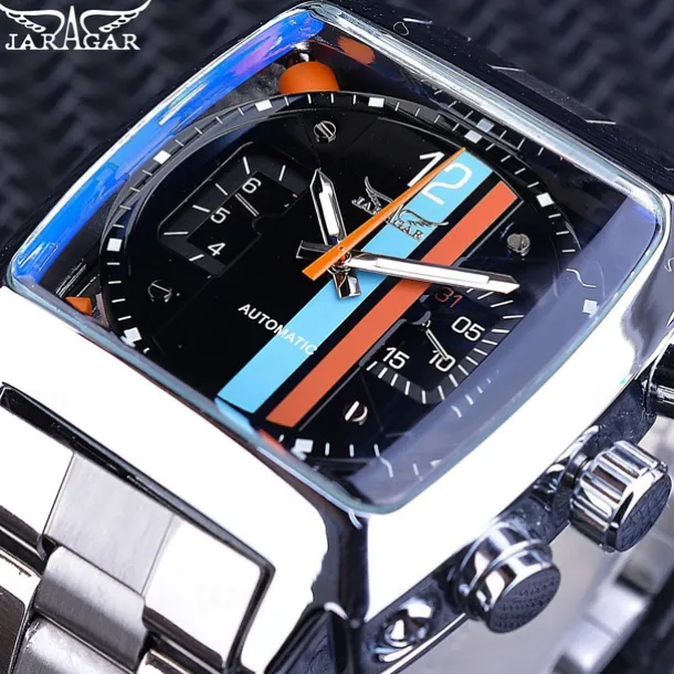 JARAGAR 569 Men Automatic Mechanical Watch Fashion Retro Design Square Dial Date Week Waterproof Steel Strap Leisure Wristwatch