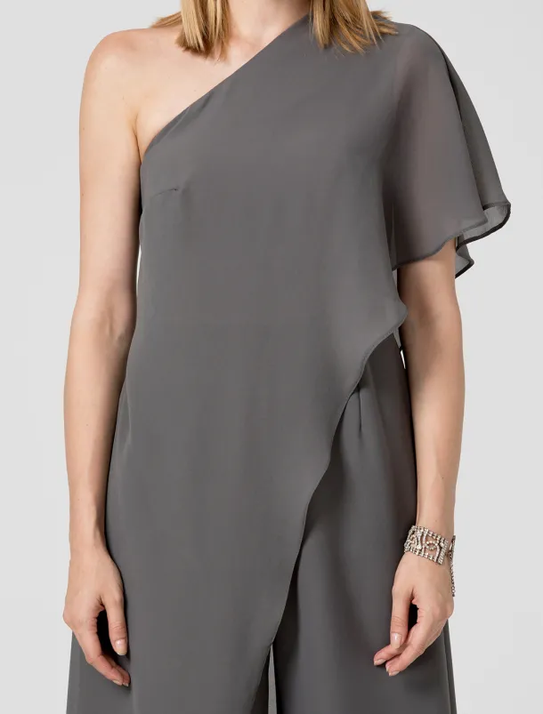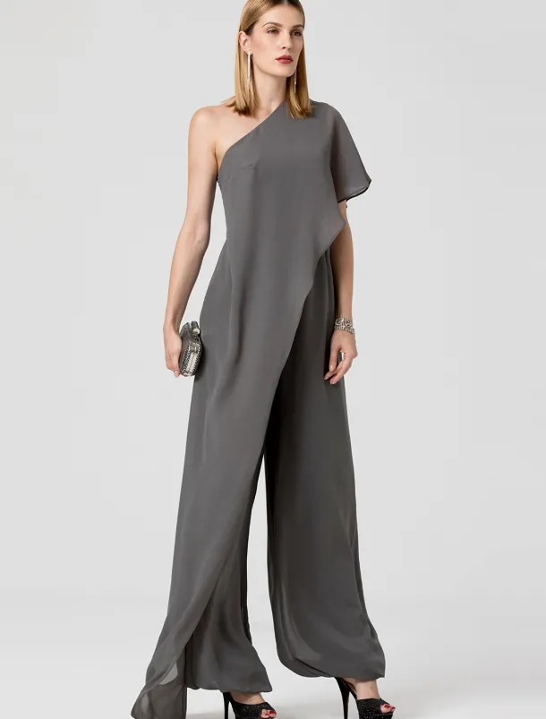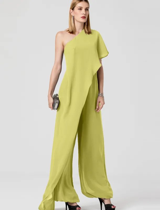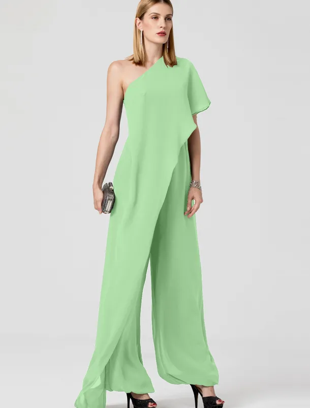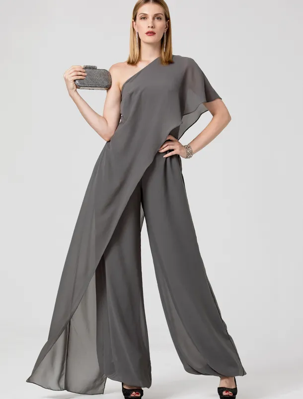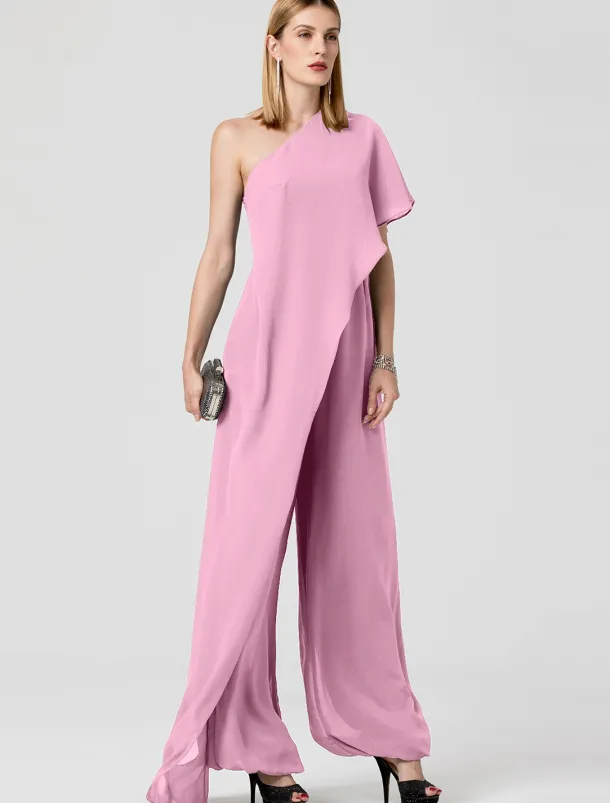 Jumpsuits Sexy Dress Formal Evening Floor Length Sleeveless One Shoulder Fall Wedding Guest Chiffon with Draping