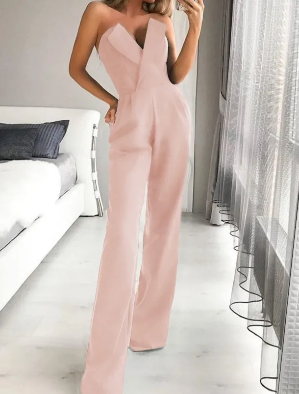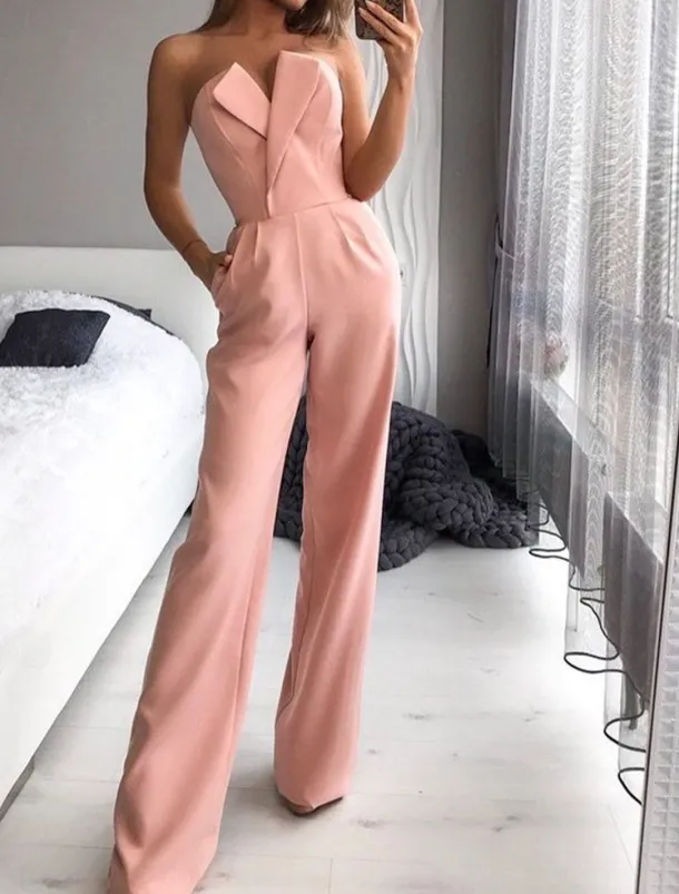 Be the first to review “Jumpsuits Wedding Guest Dresses Tuxedo Dress Rompers Dress Party Wear Wedding Party Floor Length Sleeveless Strapless Stretch Fabric with Pocket” Cancel reply