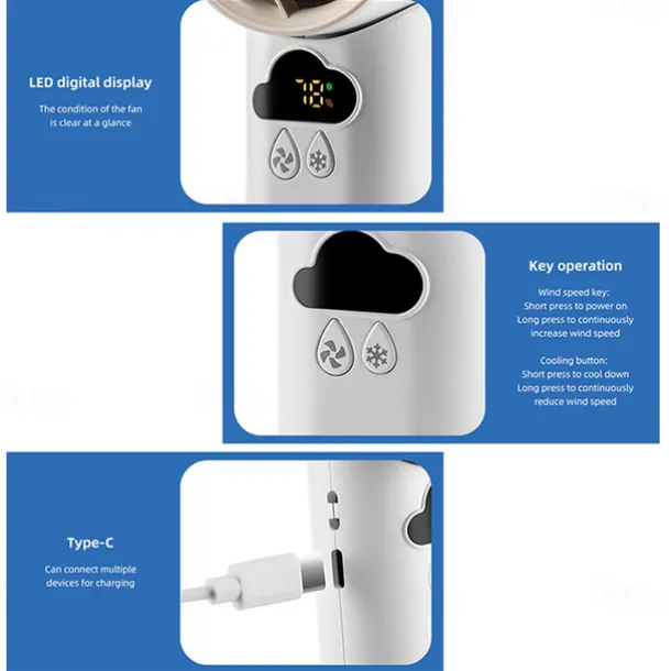 K52 Handheld Cooling Fan with Ice Porcelain Refrigeration, 13000rpm Motor, 100-Speed Stepless Control, Foldable Design, LED Display, and Type-C Charging – Portable Mini Fan for Summer Travel & Office
