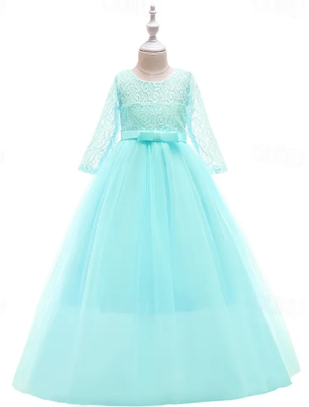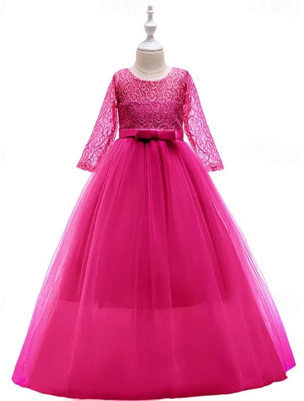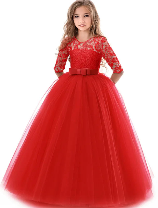 – High-waisted and floor-length with cute half sleeves and a bow-knot decor at the waist