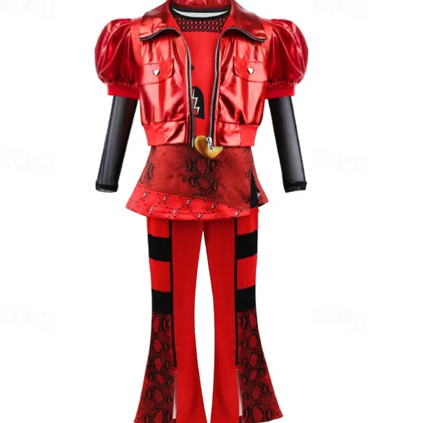 Kids Red Queen of Hearts Halloween Outfits Descendants The Rise of Red Cosplay Kid’s Girls’ Carnival Party Easy Halloween Costumes Dress Up