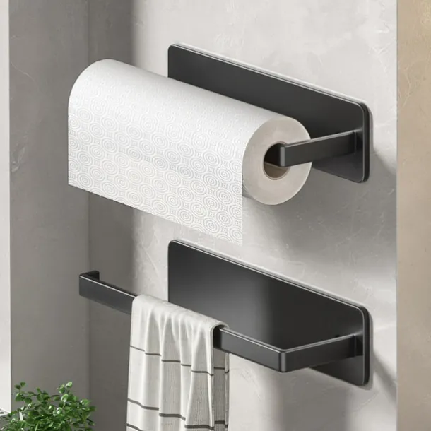 Kitchen Paper Towel Rack Non Perforated Cabinet Roll Paper Storage Rack Kitchen Plastic Wrap Towel Bar Storage Rack