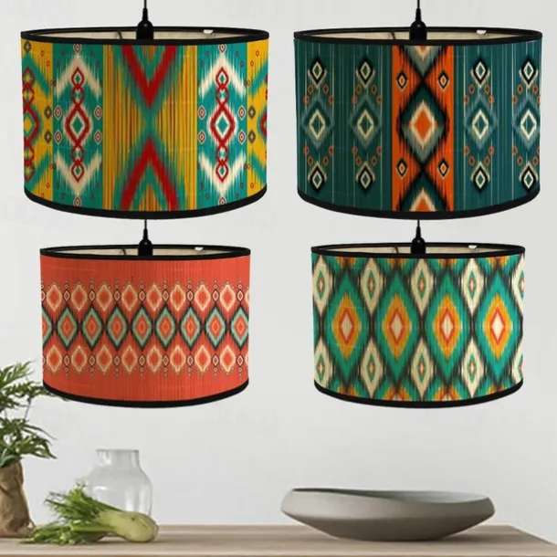 Lampshade Printing Retro Folk House Decoration Chandelier Bamboo Lighting Handicraft Ethnic Style