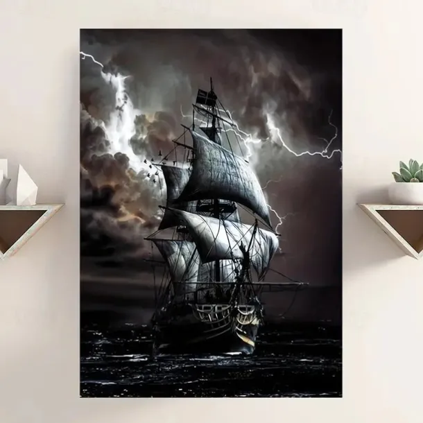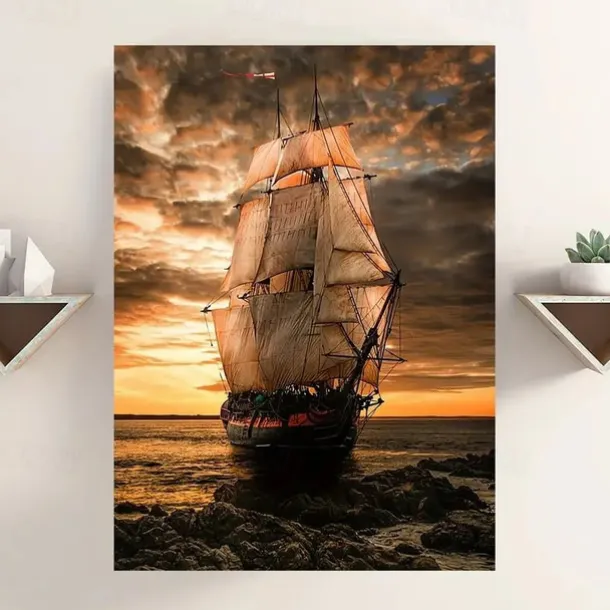 Landscape Wall Art Canvas Black Sailboat Waves Prints and Posters Pictures Decorative Fabric Painting For Living Room Pictures No Frame