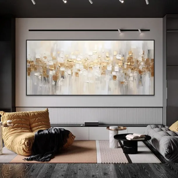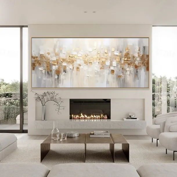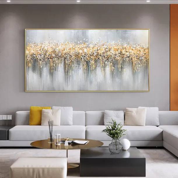Large hand painted Abstract Gold Texture Oil Painting on Canvas hand painted Minimalist Yellow Ripple Acrylic Painting Modern artwork painting for Living Room Wall Art Decor
