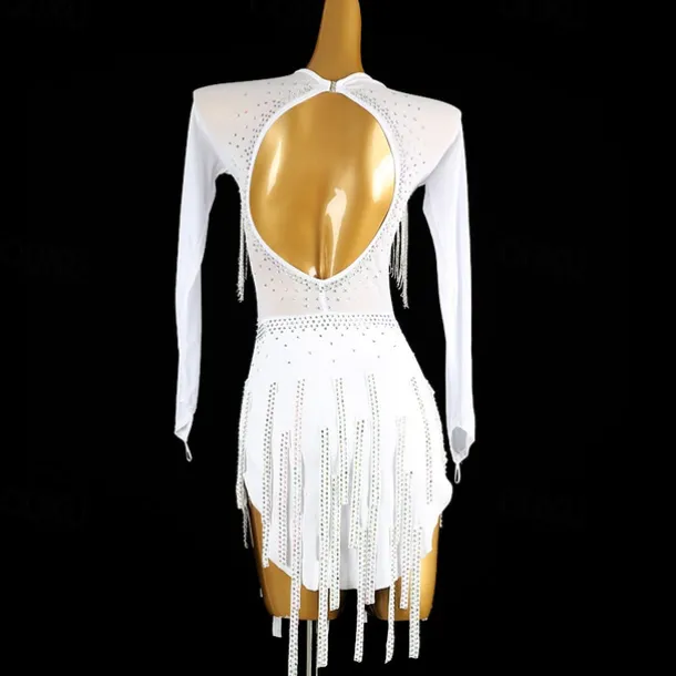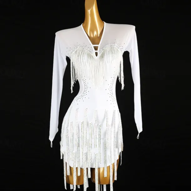 Latin Dance Exotic Dancewear Dress Tassel Crystals / Rhinestones Women’s Performance Daily Wear Long Sleeve Spandex