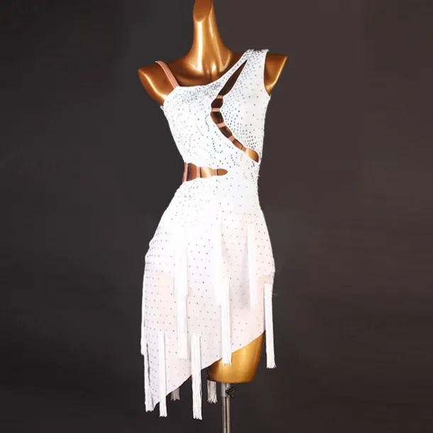 Latin Dance Exotic Dancewear Latin Salsa Dance Dress Tassel Crystals / Rhinestones Women’s Performance Daily Wear Sleeveless Spandex