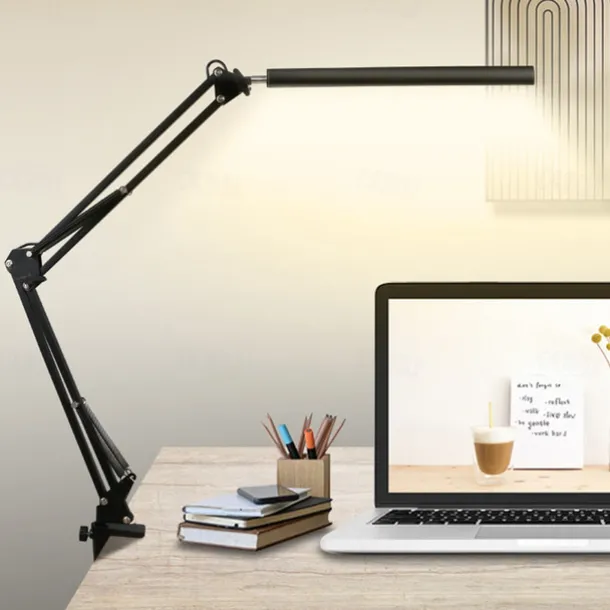 LED Desk Lamp Swing Arm Desk Light with Clamp 3 Lighting 10 Brightness Eye-Caring Modes Reading Desk Lamps for Home Office 360Spin with USB Adapter & Memory Function black-12W