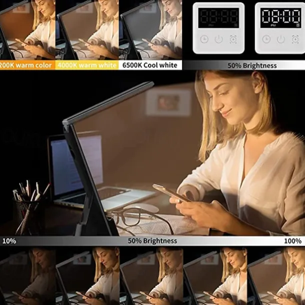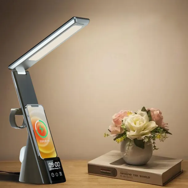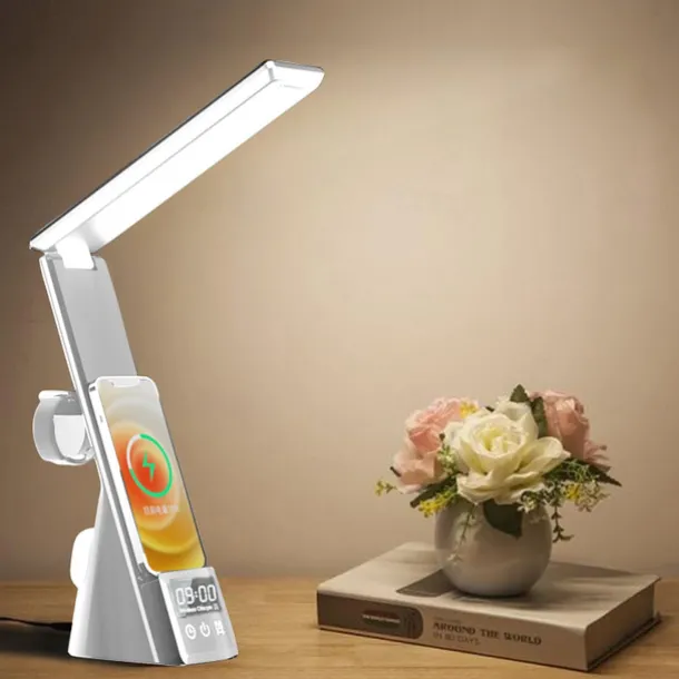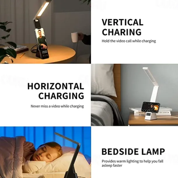 LED Desk Lamp with Wireless Charger 3 in 1 Fast Charging Station Touch Control Desk Lamp with Clock Alarm 3 Lighting Modes & Stepless Brightness Home Office Eye-Caring Table Lamps